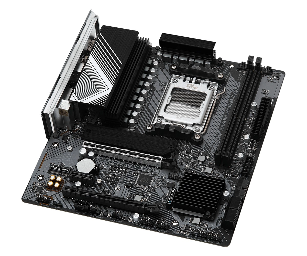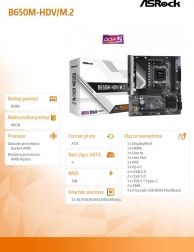 ASRock B650M-HDV/M.2 kombinerer den moderne AMD AM5-platform med omfattende tilslutning og fokus på pålidelighed. Med support til DDR5 i høje frekvenser og Blazing M.2 (PCIe Gen5 x4) får du topydelse til både arbejde og spil. De integrerede grafikudgange HDMI og DisplayPort kan bruges med Ryzen APU’er, mens Dragon 2.5G-netværket giver hurtig og stabil forbindelse.
