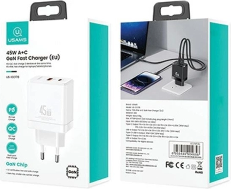 USAMS US-CC178 opladeren tilbyder to forskellige USB-porte, hvilket gør den i stand til at understøtte hurtigopladningsprotokoller som QC3.0, AFC og FCP, hvilket sikrer kompatibilitet med modeller fra mærker som Huawei, Apple, Xiaomi, Honor, OPPO, Samsung og flere. Høj effektkapacitet gør det muligt at oplade større enheder som bærbare computere – for eksempel kan en MacBook Air oplades på under to timer!