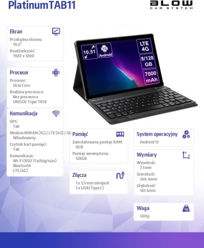 Tablet Platinum TAB11 4G kombinerer moderne design med avanceret teknologi. Takket være den store 10,5-tommers skærm leverer den et strålende billede til at se film, spille spil eller arbejde med dokumenter.