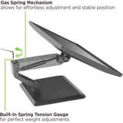 Den højtkvalitets mekanisme med gasfjeder udligner skærmens vægt og muliggør glidende, sikker højdejustering uden anstrengelse.