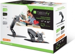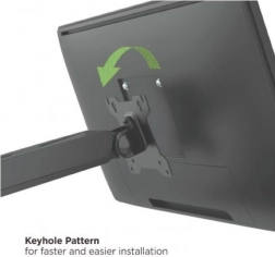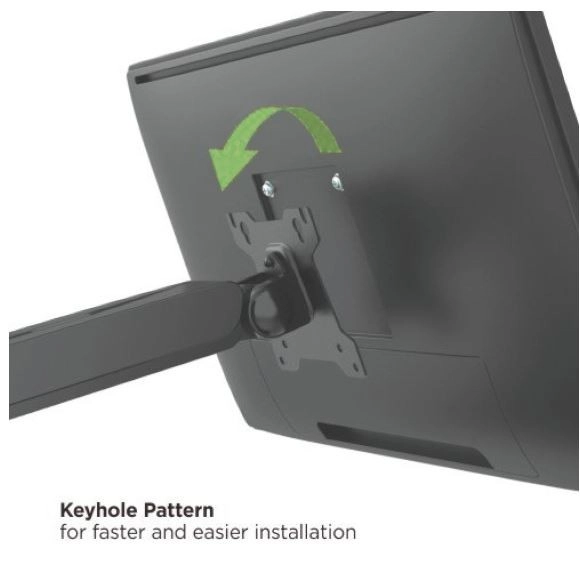 Holderen understøtter skærme i størrelsen 17–32" og vægt op til 10 kg, og tilbyder fri tilt, drejelig base og rotation for perfekt visning fra enhver vinkel. Den praktiske kabelstyring holder arbejdsfladen ryddelig, og nøglehulsåbningen gør monteringen væsentligt hurtigere.