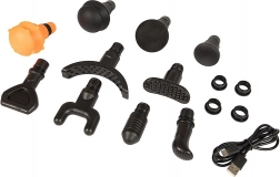 I pakken finder du 10 udskiftelige hoveder til forskellige muskelgrupper og et robust etui til sikker opbevaring og nem transport.