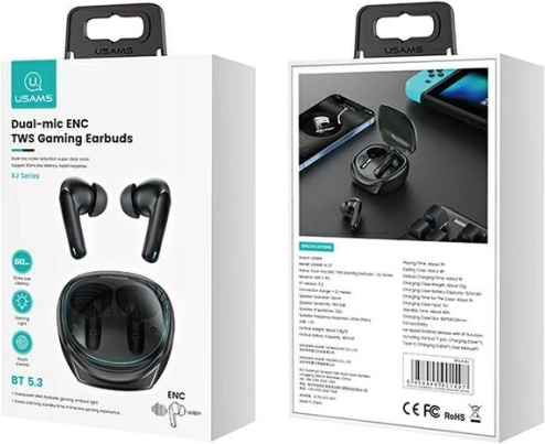 USAMS XJ13 TWS: Bluetooth 5.3, gamingtilstand 60 ms, ENC-mikrofon, op til 30 t med etui, let ergonomi og touch-betjening. Perfekt til spil og musik.