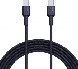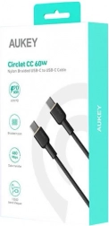 Holdbart Aukey USB‑C ↔ USB‑C kabel på 1,8 m tilbyder hurtig opladning med Power Delivery 60 W (3 A, 20 V), hurtig dataoverførsel og premium nylonsleeve for lang levetid uden sammenfiltring.