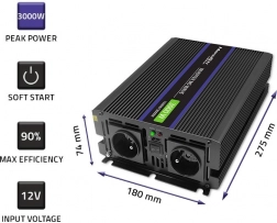 Leder du efter en pålidelig 230 V-kilde fra et 12 V batteri til camping, autocamper, båd eller værksted? Spændingsomformeren MONOLITH MS Wave med modificeret sinuskurve leverer stabil effekt op til 3000 W i spids (1500 W kontinuerligt), så den uden problemer klarer TV, laptop, opladere, mindre apparater og kontorudstyr. Aluminiumsribber sikrer effektiv køling og lang levetid.