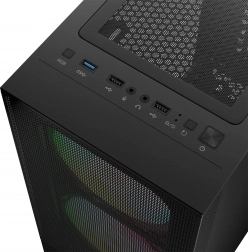 Konstruktion med mesh paneler og tre ARGB blæsere giver fremragende køling med mulighed for montering af to ekstra blæsere eller vandkøling.