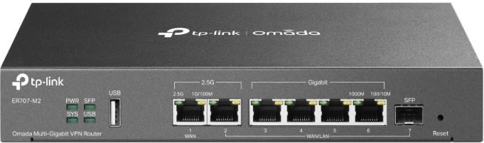 Routeren TP-Link Omada ER707-M2 er udstyret med flere Ethernet-porte for udvidet tilslutning og tilbyder multi-gigabit-ydelse, hvilket gør den ideel til højhastigheds-internetmiljøer. Med VPN-understøttelse er den velegnet til sikker og privat kommunikation i virksomhedsnetværk.