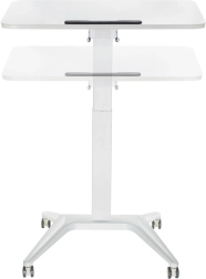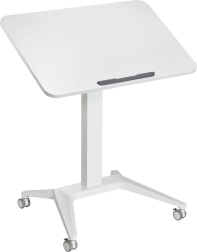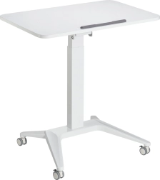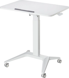 Arbejd komfortabelt både siddende og stående med det mobile Maclean-bord, som tilbyder pneumatisk højdejustering 76–109 cm, en vippbar bordplade og en stabil metalkonstruktion på hjul. En kompakt løsning, der sparer plads og øger komfort og produktivitet både hjemme og på kontoret.