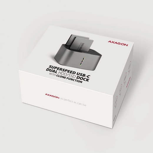 Universel AXAGON-dockingstation til to 2.5"/3.5" diske tilbyder hurtig tilslutning via USB-C 5 Gb/s, support for SATA 6 Gb/s med UASP og bekvem offline-kloning uden computer. Udnyt fuld ydelse af SSD, TRIM-funktion, læsning af S.M.A.R.T. og automatisk dvale. Stabilt aluminiumshus, LED-indikatorer og medfølgende USB-C–USB-A-kabel sikrer enkel og pålidelig brug.