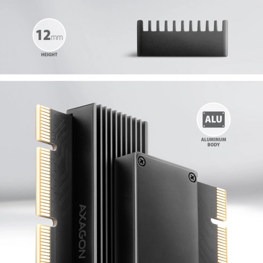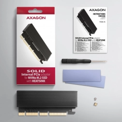 Medfølgende er en robust ribbet aluminiums-køleprofil, som sammen med varmeledende pads effektivt leder varmen væk fra begge sider af modulet. Det sikrer stabil ydeevne selv for krævende PCIe 5.0 NVMe-drev uden throttling. Adapteren håndterer både enkeltsidede og dobbeltsidede moduler og har ingen begrænsning på maksimal kapacitet.