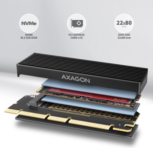 AXAGON PCEM2-XS er en kompakt og elegant PCIe-adapter, der forvandler en ledig PCIe-slot til et højtydende interface til NVMe M.2 SSD. Takket være kompatibilitet med PCIe 5.0/4.0/3.0 udnytter den det fulde potentiale i moderne SSD’er og leverer topklasse båndbredde og hurtig respons. LED-indikator viser tilslutning og diskaktivitet.