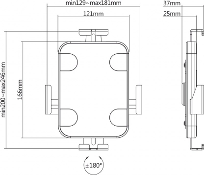 Universel vægmonteret tabletholder med udtagningssikring til tablets 7,9"–11". Tilbyder sikker fastgørelse, justerbare arme og beskyttende gummipuder. Ideel til receptioner, butikker og showrooms til præsentationer og interaktive informationsstande.