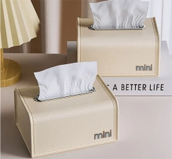 Mål 9,3 × 19 × 13,5 cm er ideelle til almindelige servietter (maks. længde 17 cm). Den dekorative æske fås i creme eller brun; varen leveres i assorterede farver uden mulighed for valg. Vælg en praktisk organizer, der holder servietterne lige ved hånden og samtidig pifter dit interiør op.