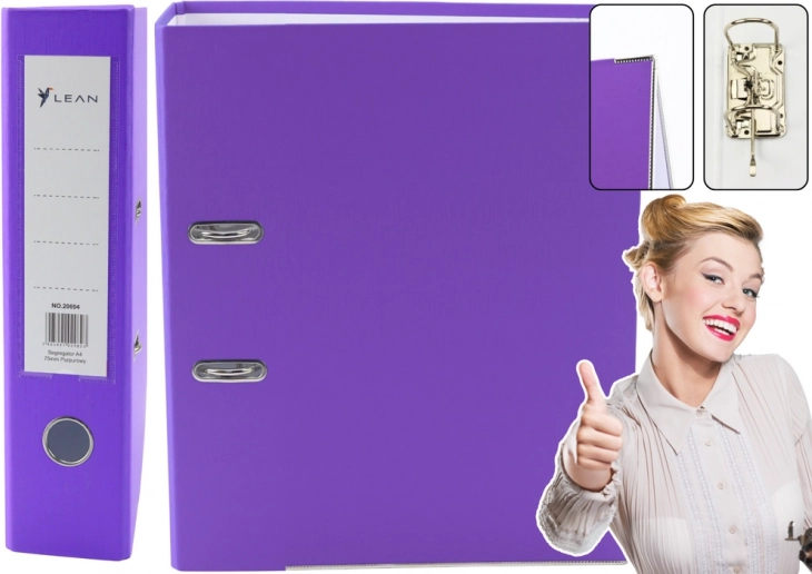 Praktisk A4 brevordner med klem-mekanisme med 75 mm ryg i elegant purpur gør daglig arkivering nem. Rummer op til 500 ark (80 g/m²), har en niklet klem-mekanisme for hurtig ind- og udtagning samt slidstærk karton 2 mm (1200 gsm). Rygetiket og gribehul gør mærkning og håndtering enklere.