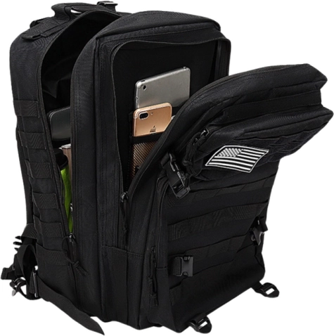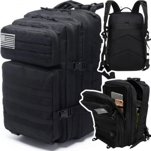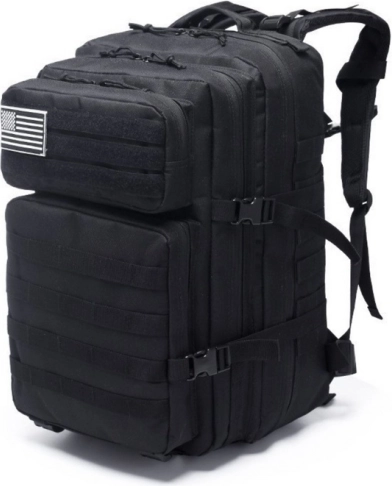 Alsidig taktisk rygsæk 40–60 l i sort til vandreture, udflugter og daglig brug. Tilbyder slidstærk polyester, ergonomisk bæresystem, rygventilation og modulært MOLLE-system til udvidelse af kapaciteten. Takket være kompressionsremme, vandtæt konstruktion og smart indvendig organisering bærer du sikkert alt det nødvendige.