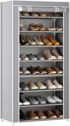 Konstruktionen af stålrør, plastkoblinger og holdbart nonwoven-stof sikrer stabilitet og lang levetid. Udvalgte hylder kan fjernes for at opbevare højere fodtøj såsom støvler eller ankelstøvler.