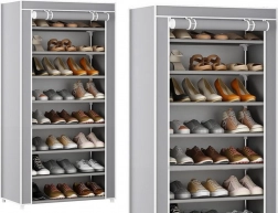 Elegant og funktionel løsning til hele familien: Denne skoguide med 8 niveauer rummer op til 40 par og sparer værdifuld plads. Det støvafvisende overtræk beskytter skoene mod snavs, mens front med lynlås og velcro gør daglig brug let.