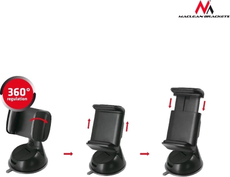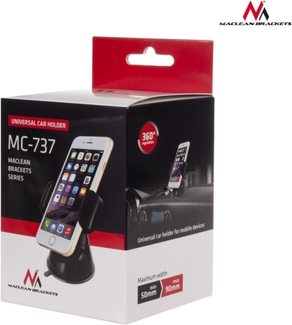 Universal bilholder Maclean MC-737 tilbyder nem fastgørelse af din mobile enhed med en sugekop. Takket være det 360-graders drejelige hoved kan du tilpasse den ideelle position selv på begrænset plads.