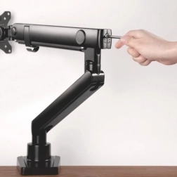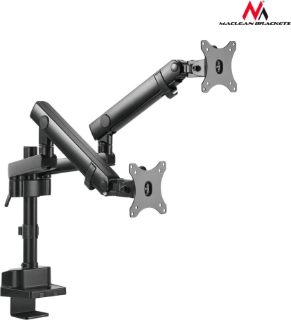 Universel bordholder til to skærme MACLEAN BRACKETS MC-812 tilbyder ergonomisk justering, pladsbesparelse på skrivebordet og stærk metalkonstruktion. Takket være jævn regulering af hældning, rotation og højde kan du nemt indstille den ideelle position for skærmene. Kompatibilitet med VESA 75x75 og 100x100 sikrer hurtig installation uden boring i vægge.