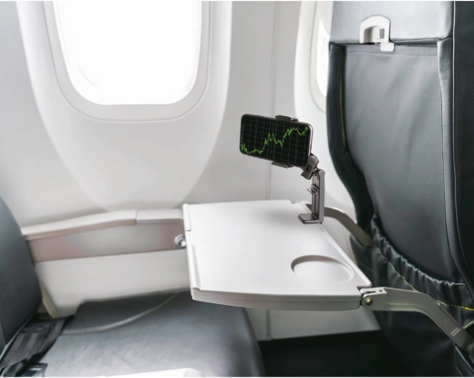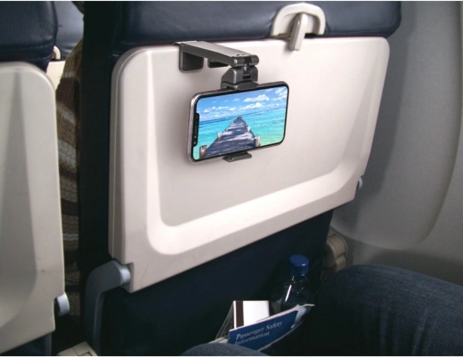 Fastgør holderen på flybakken eller kuffertens håndtag og nyd film eller arbejde komfortabelt under flyvningen eller på farten.