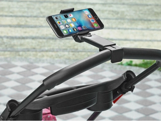 Monteringen tager et øjeblik: klik nemt holderen på bordkanten, en hylde, flybakken eller barnevognens bøjle. Den fungerer lige så godt som bordstativ på natbordet eller skrivebordet. Takket være den foldbare konstruktion passer den i lommen eller en lille taske, så du altid har den ved hånden.