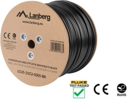 Professionelt udendørs UTP-kabel CAT5e i længden 305 m af rent kobber til pålidelige netværksinstallationer. Tilbyder 100 % kobberledere, AWG 24 – massiv leder, robust PE-kappe og drift op til 100 MHz for stabil dataoverførsel op til 100 m.