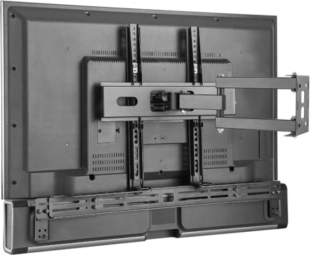 Dette beslag forbedrer ergonomien, sparer plads og skaber et ensartet visuelt udtryk i dit AV-setup. Et fremragende valg til ryddelig kabelhåndtering og stabil fastgørelse af soundbaren tæt på skærmen.