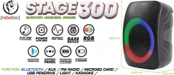 Bærbar Bluetooth-højttaler Stage 300 tilbyder en fantastisk musikoplevelse, uanset hvor du befinder dig. Den udmærker sig ved sin alsidighed, kraftige lyd og flerfarvet RGB-belysning.