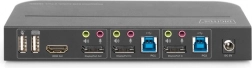 To frontmonterede USB 3.0-porte til deling af periferiudstyr samt 3,5 mm jack til hovedtelefoner og mikrofon giver fleksibelt arbejde på begge computere.
