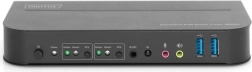 Styr to computere med ét tastatur og én mus takket være den 2-portede DIGITUS KVM-switch med understøttelse af 4K ved 60 Hz. Den tilbyder DisplayPort-indgange, HDMI- og DisplayPort-udgang, lyd-omskiftning, forreste USB 3.0-porte til periferiudstyr samt nem omskiftning med knap eller IR-fjernbetjening. Metalchassis, Plug & Play og mulighed for vægbeslag sikrer driftssikkerhed på kontoret og i hjemmearbejdsrummet.