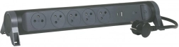 Organisér din strømforsyning smart og sikkert. Denne sorte forlængerledning kombinerer fem klassiske stik med to USB-porte (USB-A og USB-C), så du nemt kan tilslutte laptop, lampe og telefonoplader uden ekstra adaptere. Takket være kabellængden på 1,5 m når du let stikket selv bag møbler.