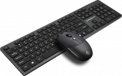 Tastaturet tilbyder 104 lavprofil-taster med QWERTY-layout, ideelt til effektiv og hurtig skrivning. Den optiske mus har opløsninger på 800, 1200 og 1600 DPI, fire knapper og rullehjul, hvilket giver præcis markørkontrol. Begge enheder drives af ét AAA-batteri til tastaturet og ét AA-batteri til musen.