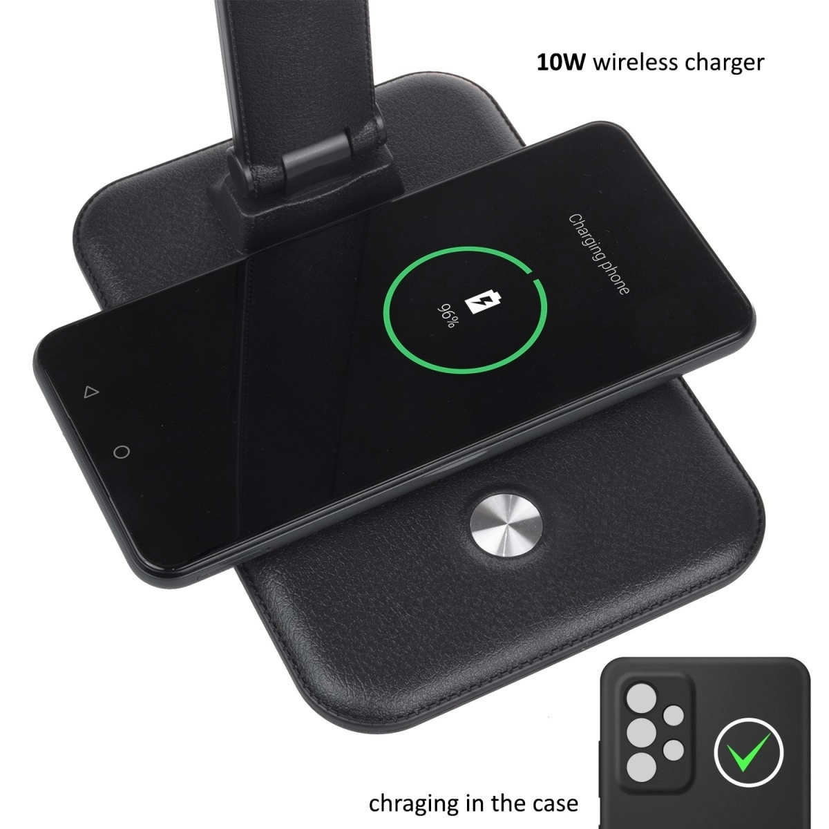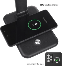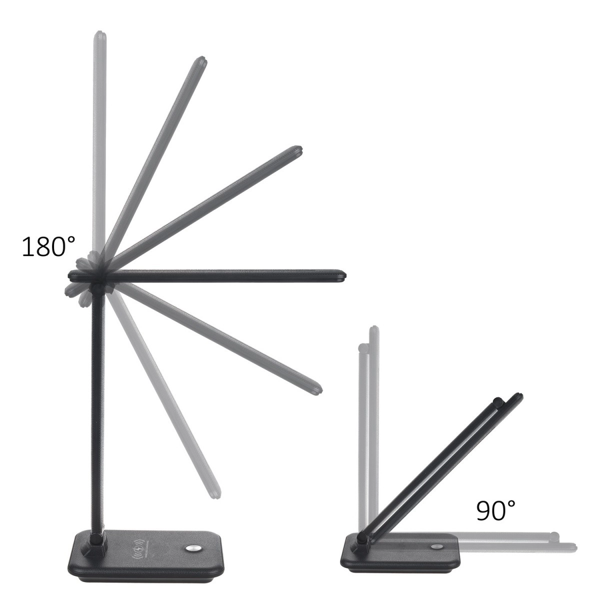 Lampen er udstyret med en trådløs Qi-oplader, som gør det let at oplade enheder, der understøtter trådløs opladning, direkte fra lampens stabile base. Designet understøtter individuel justering, hvilket sikrer den rette lysvinkel.