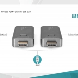 Wireless HDMI Extender-sættet muliggør trådløs overførsel af HDMI video- og lydsignaler op til en afstand på 50 m uden direkte synlige forhindringer. Installation er nem takket være Plug & Play-funktionen; bare sæt til og brug. Sender og modtager kan forsynes med strøm via HDMI-porten på enheden (kræver 0,5 A) eller alternativt ved brug af det medfølgende micro USB-kabel gennem USB-porten på laptop, computer osv. På grund af sin kompakte konstruktion kan senderen og modtageren let installeres i både mødelokaler og i hjemmet for hurtig installation.