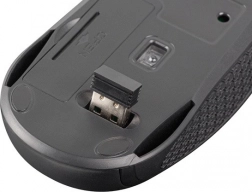 Trådløs kommunikation på 2,4 GHz muliggør bekvem brug på op til 10 meters afstand, og musen har et særligt rum til USB-modtageren, hvilket er praktisk på farten.