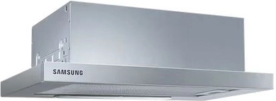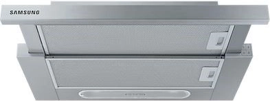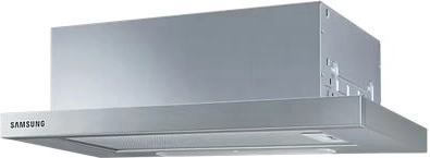 Moderne køkkenemhætte fra Samsung, designet til effektiv ventilation og stil i moderne køkkener. Denne model med integreret belysning og betjening tilbyder en stilfuld, minimalistisk æstetik.