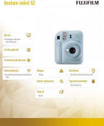 Instax Mini 12 kommer også med et indbygget spejl til selfies, så du kan tage perfekte selvportrætter. Takket være den intuitive betjening er dette kamera velegnet til brugere på alle niveauer, fra begyndere til erfarne fotografer.