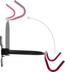 Når cyklen er taget ned, kan holderen nemt foldes, så den ikke stikker ud i rummet. Den dobbelte beskyttende belægning på krogene minimerer risikoen for lakafskalning og sikrer stabil og skånsom opbevaring. Den perfekte løsning til små husholdninger, værksteder og garager.