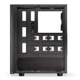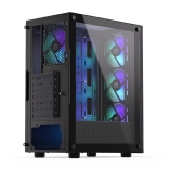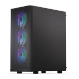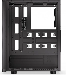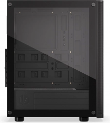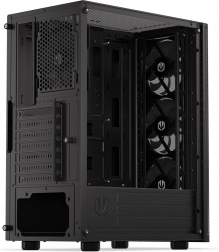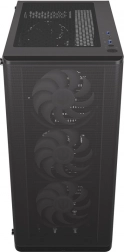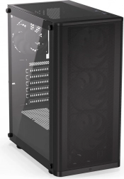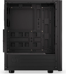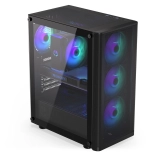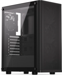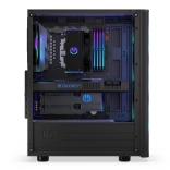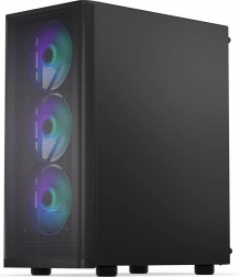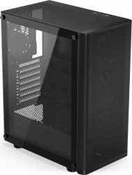Sidepanelet i hærdet glas lader komponenter og adresserbar ARGB-belysning komme til deres ret. Selvom kabinettet er kompakt (440 × 216 × 373 mm), rummer det komfortabelt et ATX-bundkort, lager 3 × 2,5" eller 1 × 3,5" + 2 × 2,5" og op til 7 blæsere. Til vandkøling er det klar til 360 mm radiator i fronten og 240 mm i toppen – ideelt til kraftige systemer.
