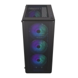Tre indtags- og én udstødningsblæser er monteret fra fabrikken, flere kan nemt tilføjes. FDB-lejer sikrer stille drift, PWM-styring tilpasser omdrejningerne efter belastningen, og ARGB giver et effektfuldt lysshow.