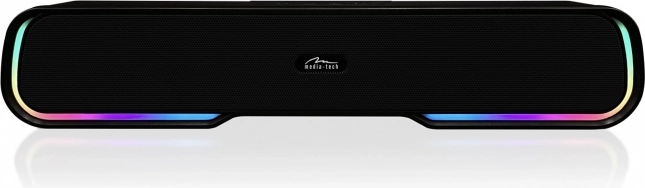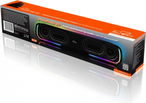 Den kompakte Bluetooth‑soundbar MEDIA‑TECH Phantom BT leverer ren og kraftig lyd fra to 2" drivere samt imponerende bas takket være to passive membraner. Den tilbyder Bluetooth 5.1 + EDR for stabil trådløs forbindelse, multimedieafspilning (MP3 fra microSD/USB), FM‑radio, handsfree med indbygget mikrofon og AUX‑indgang. Den farverige RGB‑belysning kan tilpasses eller slås fra. Batteriet giver op til 10 timers lytning derhjemme, på farten og i haven.