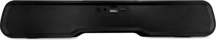 Soundbaren understøtter flere kilder: trådløst via Bluetooth, kablet via AUX, eller direkte MP3‑afspilning fra microSD‑kort og USB‑flashdrev. Den indbyggede FM‑radio med automatisk tuning udvider lyttemulighederne. En integreret mikrofon muliggør komfortable handsfree‑opkald. RGB‑belysningen kan pulserer i takt til musikken, indstilles til en statisk farve eller slukkes helt.
