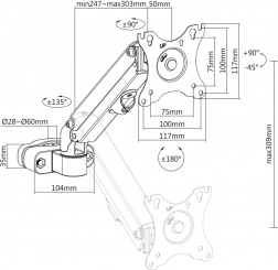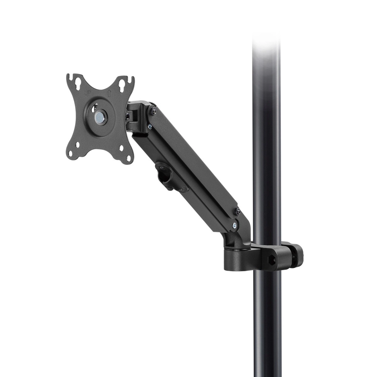 Beslaget er udstyret med en gasfjeder, der giver nem og jævn højdejustering. Det er kompatibelt med VESA 75x75 og 100x100 mm, hvilket sikrer problemfri montering af skærme fra forskellige mærker som Sony, LG, Samsung, Philips og flere.