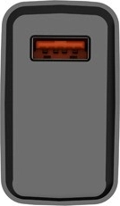 En enkelt USB‑A med op til 18 W og støtte for Quick Charge 3.0, Samsung AFC og Huawei FCP/SCP reducerer ladetiden markant for kompatible enheder.