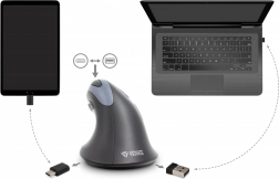 Takket være den gennemtænkte hældning og højde når du intuitivt alle betjeningselementer – scrollhjul, DPI-skifter og sideknapper. Den trådløse 2,4 GHz-forbindelse sikrer stabil og hurtig respons, nano USB-modtageren er altid ved hånden, og der medfølger også en USB‑C-adapter til moderne laptops.