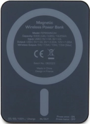 Trådløs powerbank med en kapacitet på 5000 mAh leverer tilstrækkelig energi til dine enheder overalt. Takket være de kompakte mål lægger du den nemt i taske eller lomme. Avanceret teknologi anvender beskyttelsesmekanismer for sikker opladning af dine enheder.