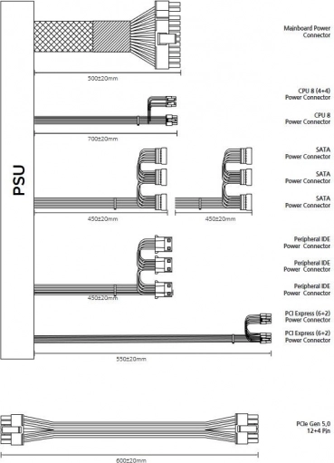80PLUS Bronze garanterer en effektivitet på 85 %, 88 %, 85 % ved 20 %, 50 % og 100 % belastning, hvilket markant reducerer systemets samlede energiforbrug. Højere effektivitet betyder lavere spildstrøm, hvilket giver mindre varme, højfrekvent støj og blæserstøj.