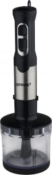 Takket være det rige 3-i-1 tilbehør hakker du nemt nødder og urter i hackeren med skridsikker base, pisker flødeskum eller æggehvider med piskeriset og måler præcist ingredienser i det medfølgende bæger. Stilfuld blå bagbelysning af betjeningen gør brugen behagelig selv i svag belysning.
