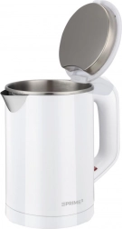 Modellen SEK11 med en kapacitet på 0,6 l er ideel til små eller minimalistiske køkkener. Det elegante hvide kabinet passer til enhver indretning, hvor udseende og praktisk anvendelighed er afgørende. Med en maksimal effekt på 800 W koger du hurtigt vand til te eller kaffe, hvilket er vigtigt især i morgenræset til arbejde eller skole.