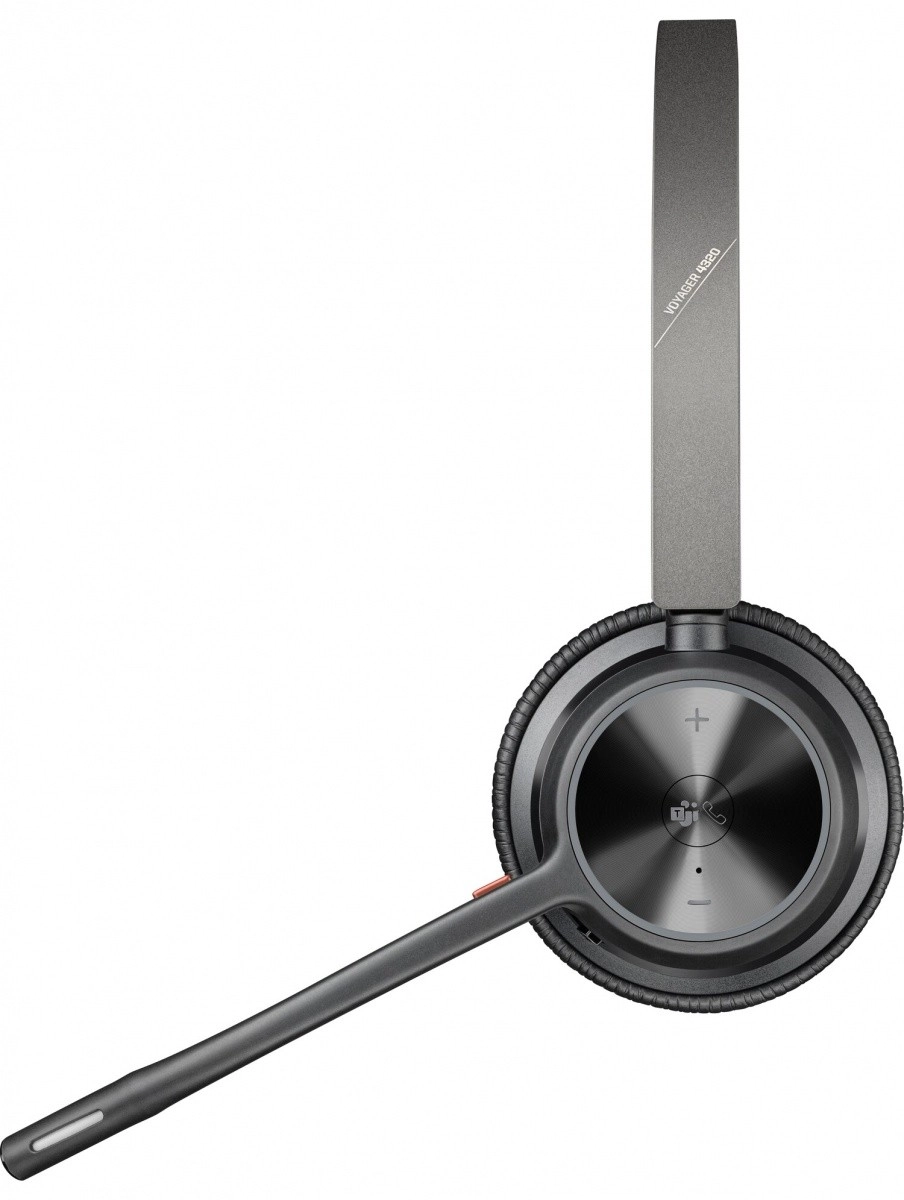 Arbejd hvor som helst og forbliv produktiv. Voyager 4320 kombinerer let design, bløde ørepuder og en bom‑mikrofon med reduktion af omgivende støj, så dine opkald altid lyder professionelle. En indbygget opptaget‑indikator (busy light) viser omgivelserne, at du er optaget, så du kan koncentrere dig.